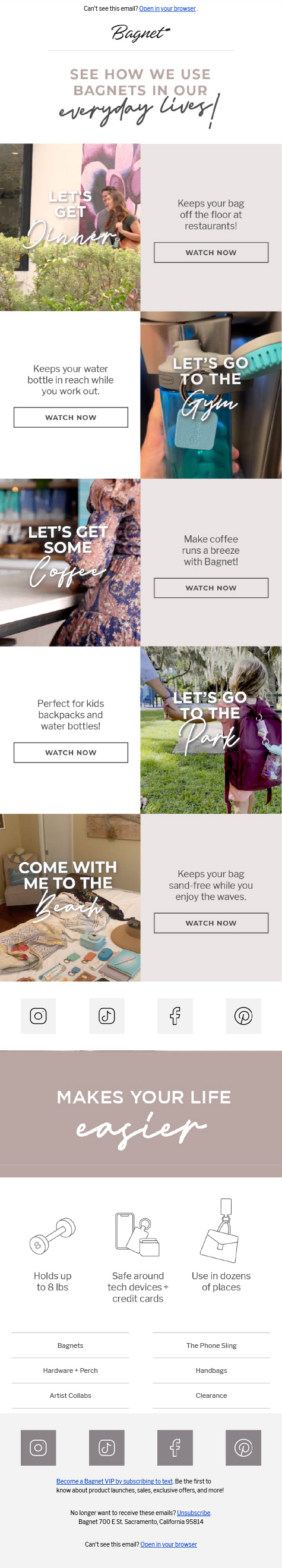 To begin to address that problem, we first needed to look inwardly at the messaging we've been sending to consumers. Bagnet as a brand is informed mostly by our email styles, and then social and web channels follow suit, so our focus was primarily on email.