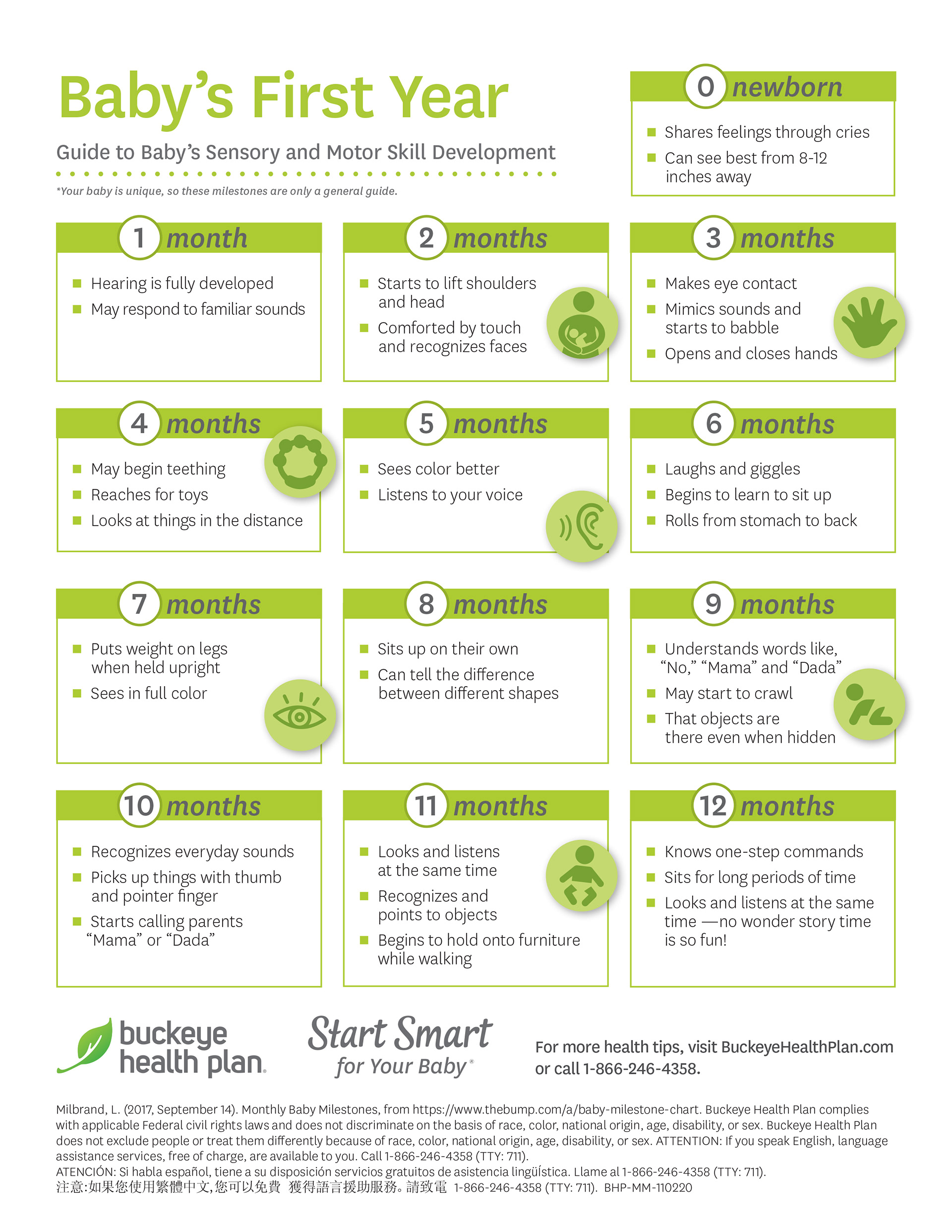 The Milestone chart and immunizations schedule were used as takeaway resources for new moms. The challenge for the design was organizing large amounts of information in a way that was easy to understand and read through.